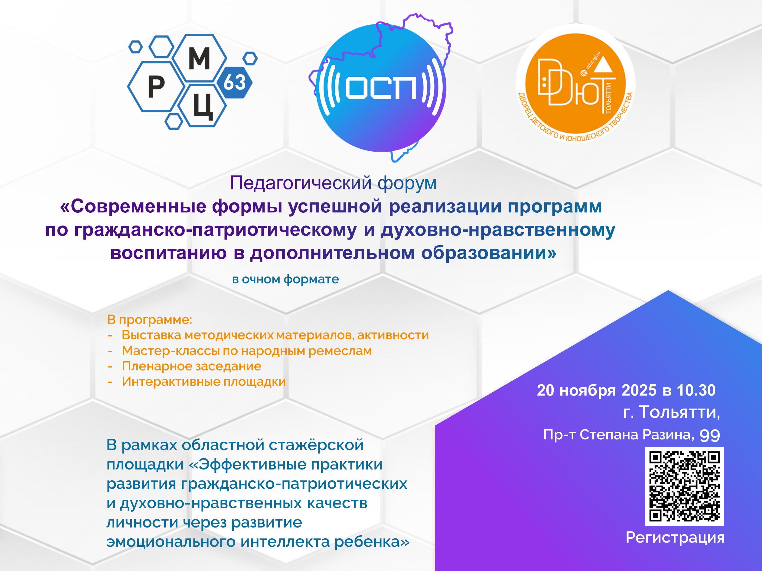 20 ноября 2025 года Педагогический форум «Современные формы успешной реализации программ по гражданско-патриотическому и духовно-нравственному воспитанию в дополнительном образовании»